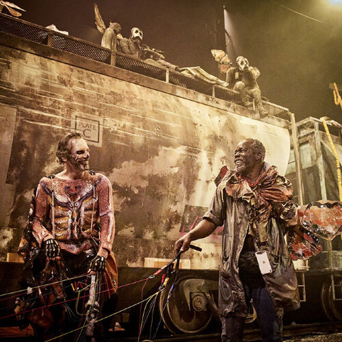 S’apprête-il à décoller ou vient-il d’atterrir ? Ce parapentiste à la toile froissée s’est lancé un défi : relier la région des Grands Lacs canadiens aux montagnes mexicaines du Michoacán. Un périple sur les traces de la plus longue migration saisonnière observée chez un insecte : celle des papillons monarques, de moins en moins nombreux en raison du réchauffement climatique. Au même moment, un jeune homme juché sur une carcasse de wagon tente la traversée inverse, du sud au nord, pour fuir la misère en enjambant le « mur Trump ». Au départ, chacun vit dans sa bulle. Mais, peu à peu, les acteurs Julien Chavrial et Jean-Erns Marie-Louise font résonner leurs trajectoires et créent des échos bouleversants sur un plateau baigné d’une lumière crépusculaire. Après avoir donné la parole aux femmes et aux hommes blessés de Sorj Chalandon, Russell Banks ou Svetlana Alexievitch (Mon traître, De beaux lendemains, La Fin de l’homme rouge), Emmanuel Meirieu revient à l’écriture. Il explore le lien de l’humain à la nature et au cosmos. Et bâtit un sanctuaire en déployant son théâtre de la fragilité.